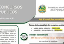 Após quase oito anos sem a realização de concurso público, a Prefeitura de Ji-Paraná anuncia…